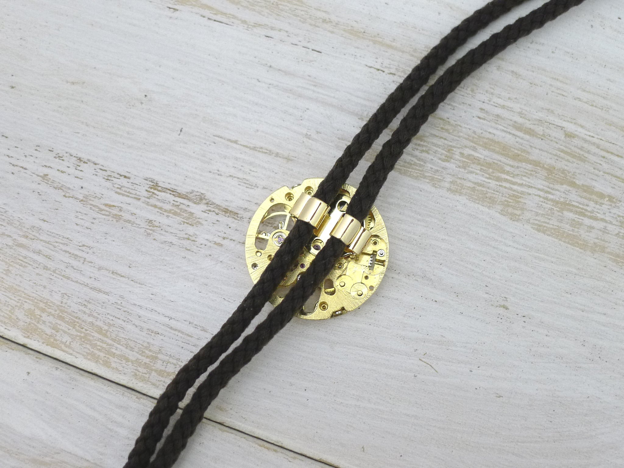 実際に使用されていた手巻き腕時計のムーブメントを使ったループタイです。