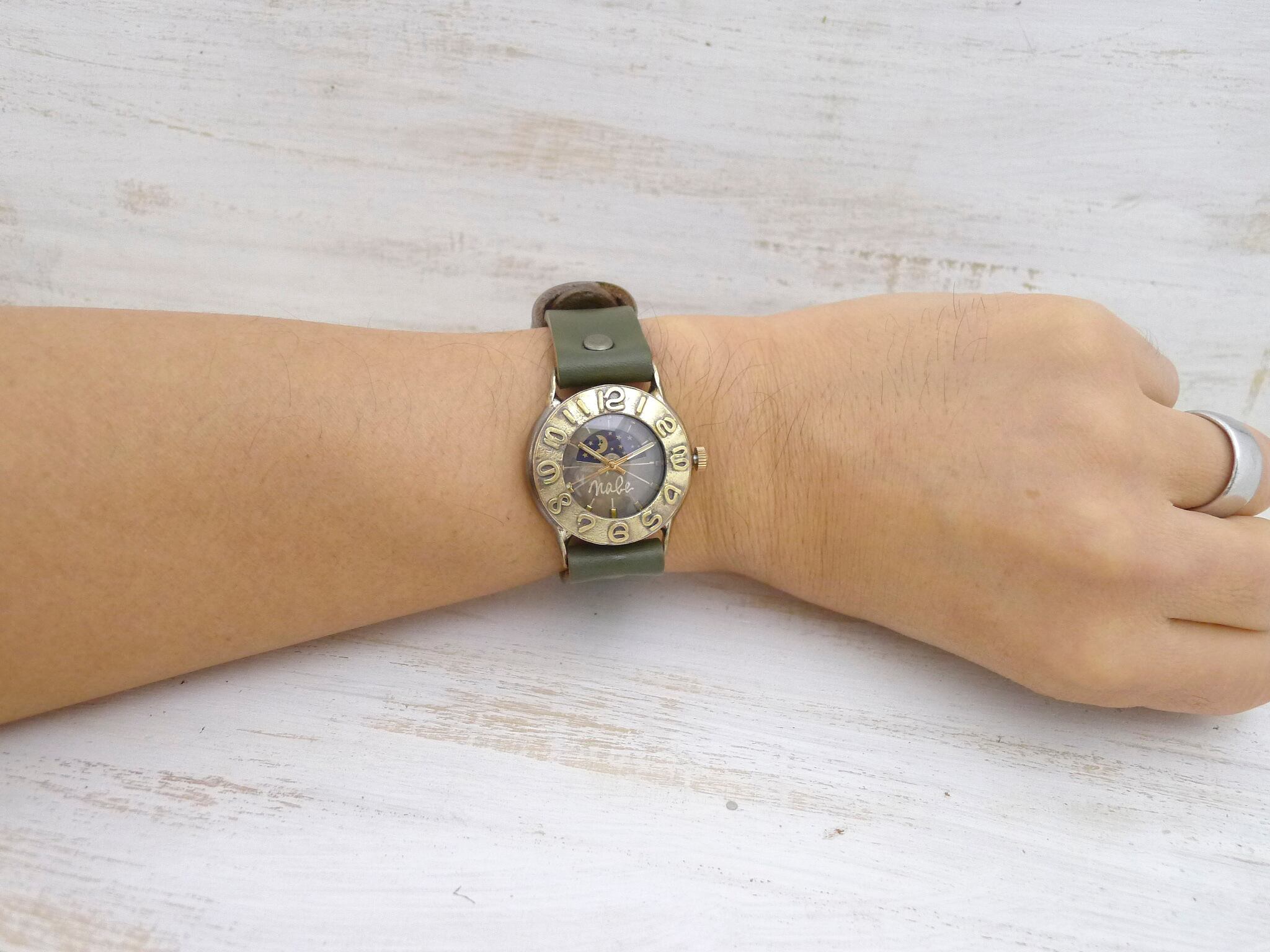 "Index1-B-S&M" Sun&Moon 32mm Brass(真鍮) 手作り腕時計 [64B-S&M KH]