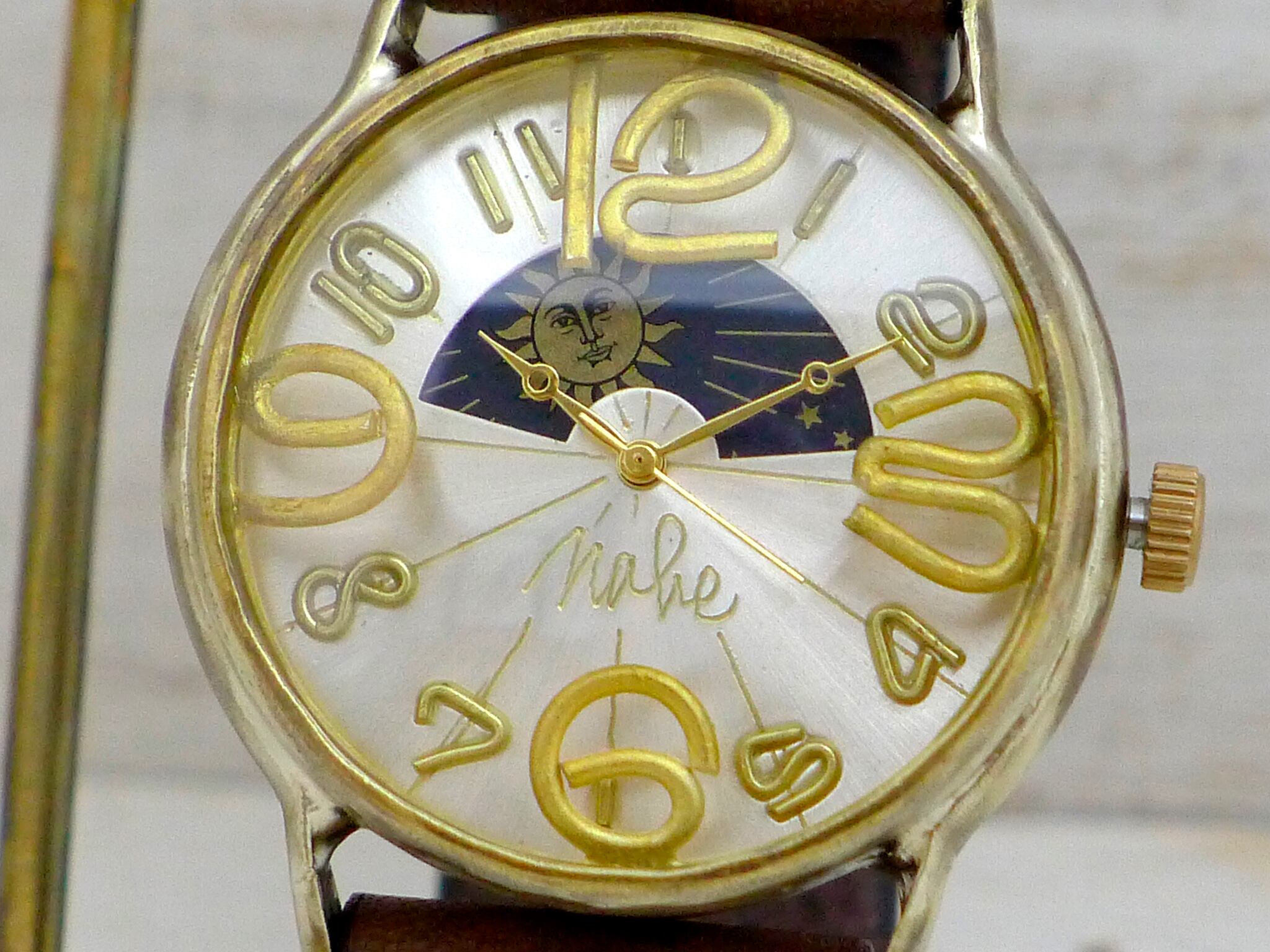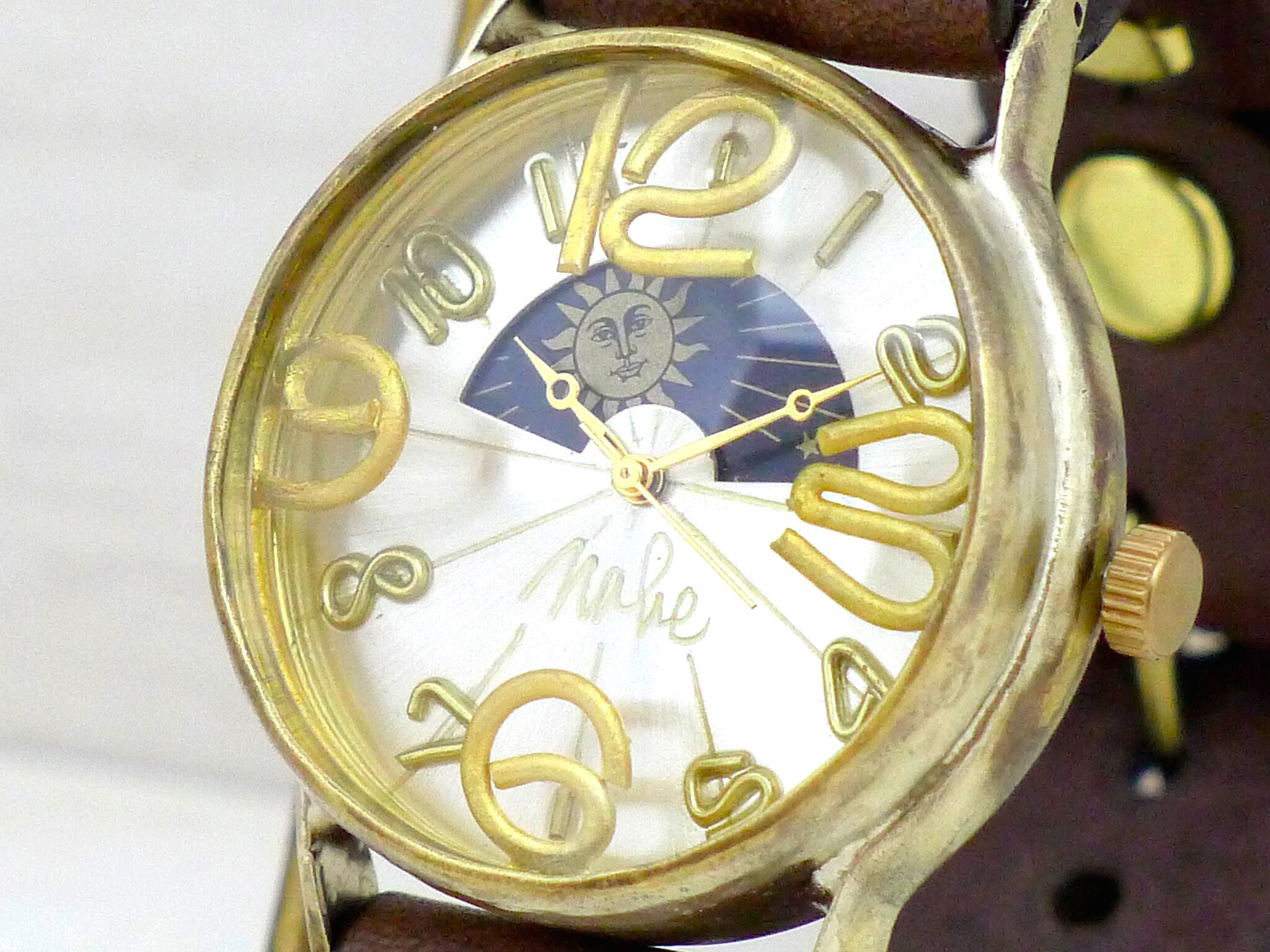 "J.S.B.2-S&M" Sun&Moon 36mmBrass(真鍮) フローティングインデックス手作り腕時計 [JUM38B-S&M SV/BR]