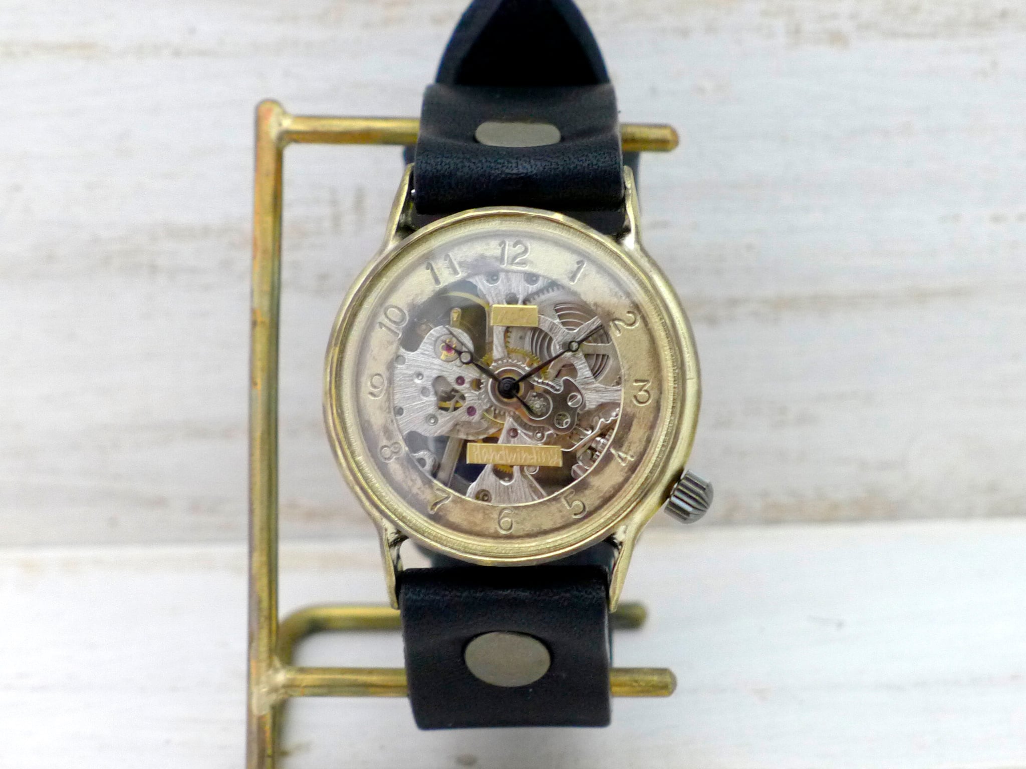 BHW071 アラビア数字 手巻Brass(真鍮)36mm手作り腕時計 [BHW071SV アラビア]