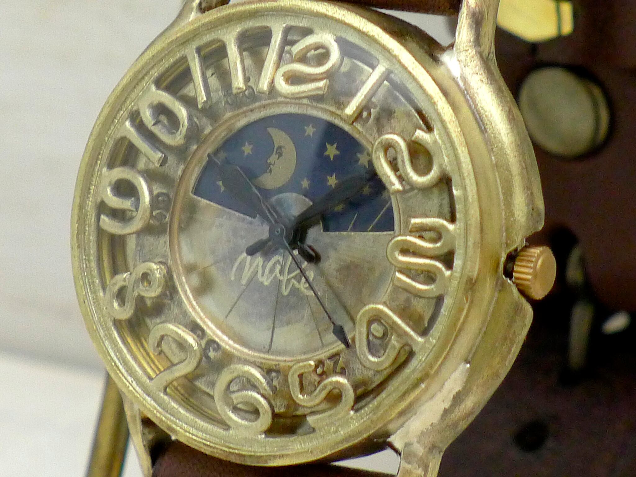クラシカルな真鍮の素材感と、サン&ムーン表示がマッチしたモデルです。