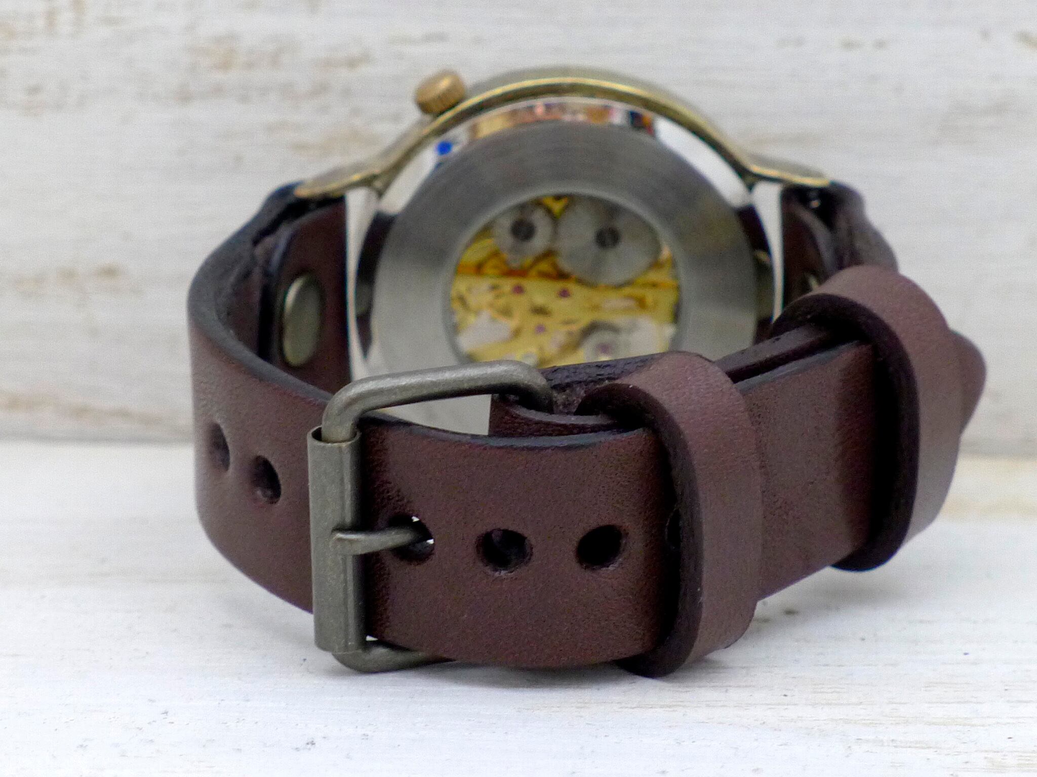BHW082 手巻きBrass(真鍮)42mm フローティングインデックス 手作り腕時計 [BHW082]