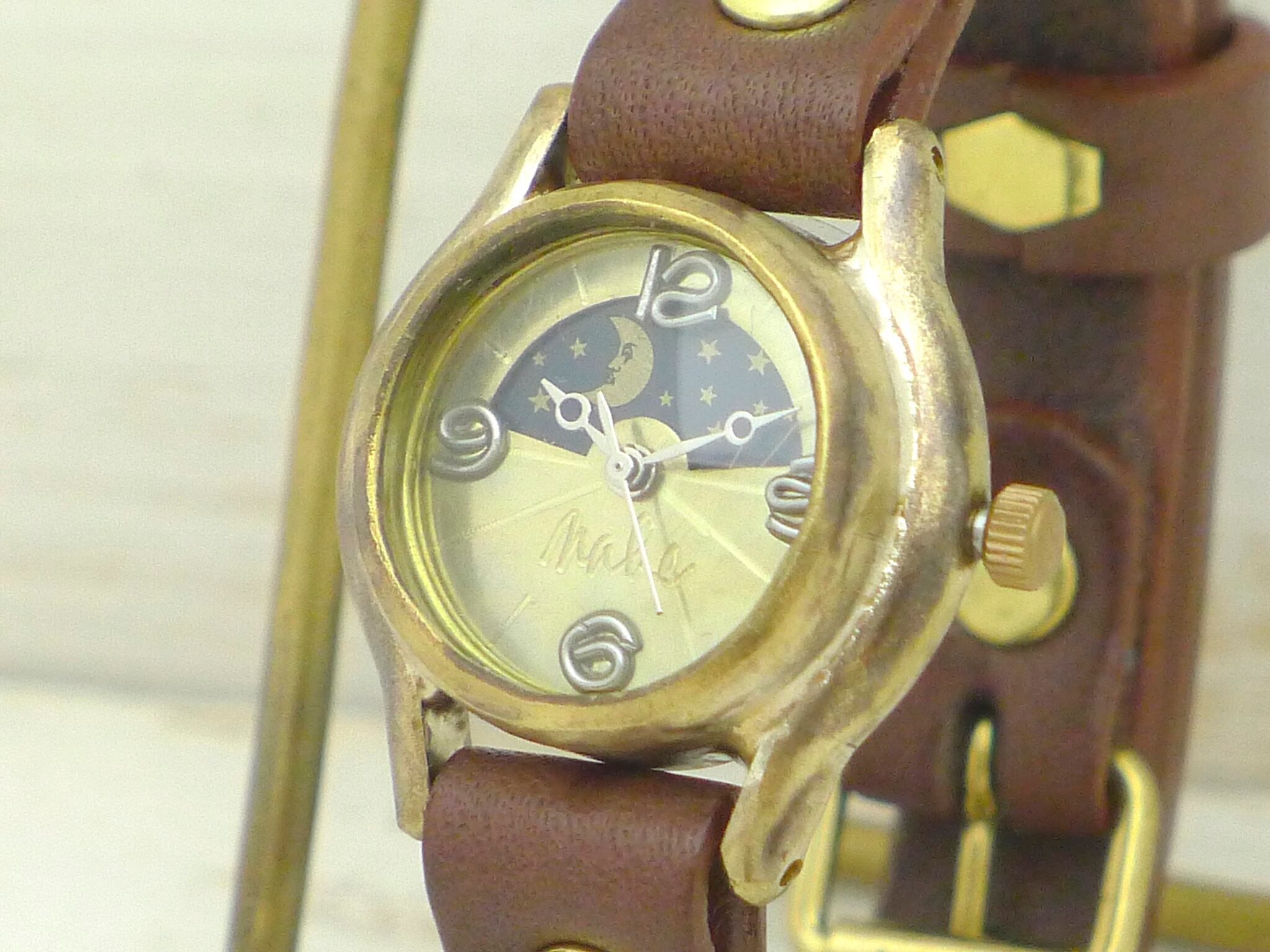 真鍮の素材感とSun&Moon表示がマッチしたモデルです。