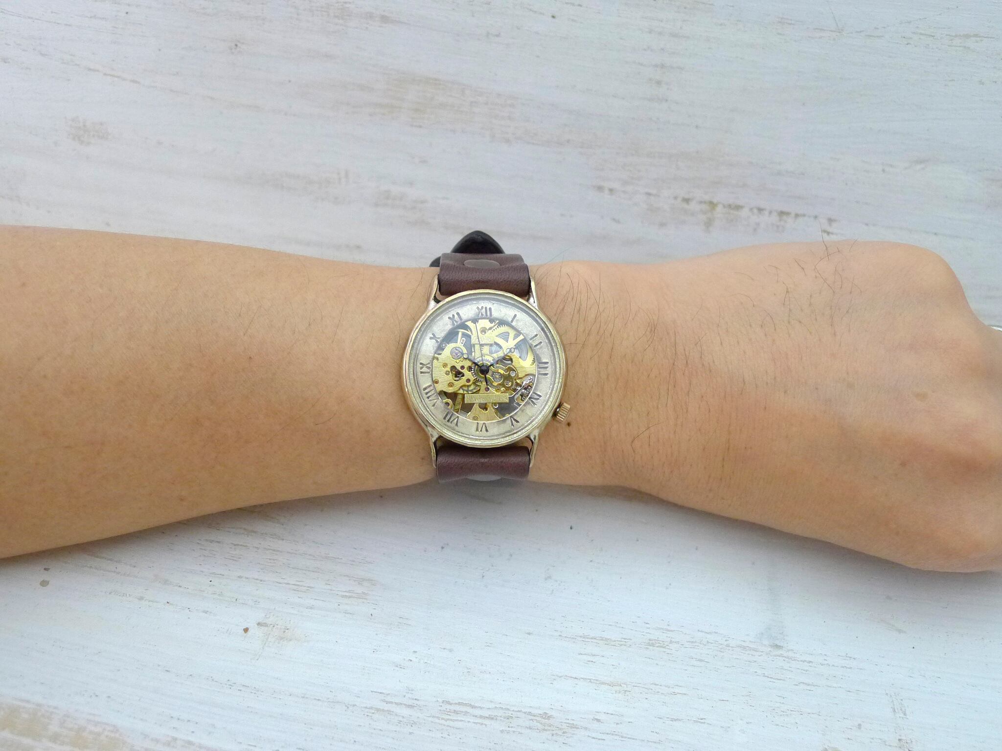 BHW071 ローマ数字 手巻Brass(真鍮)36mm 手作り腕時計 [BHW071GDローマ]