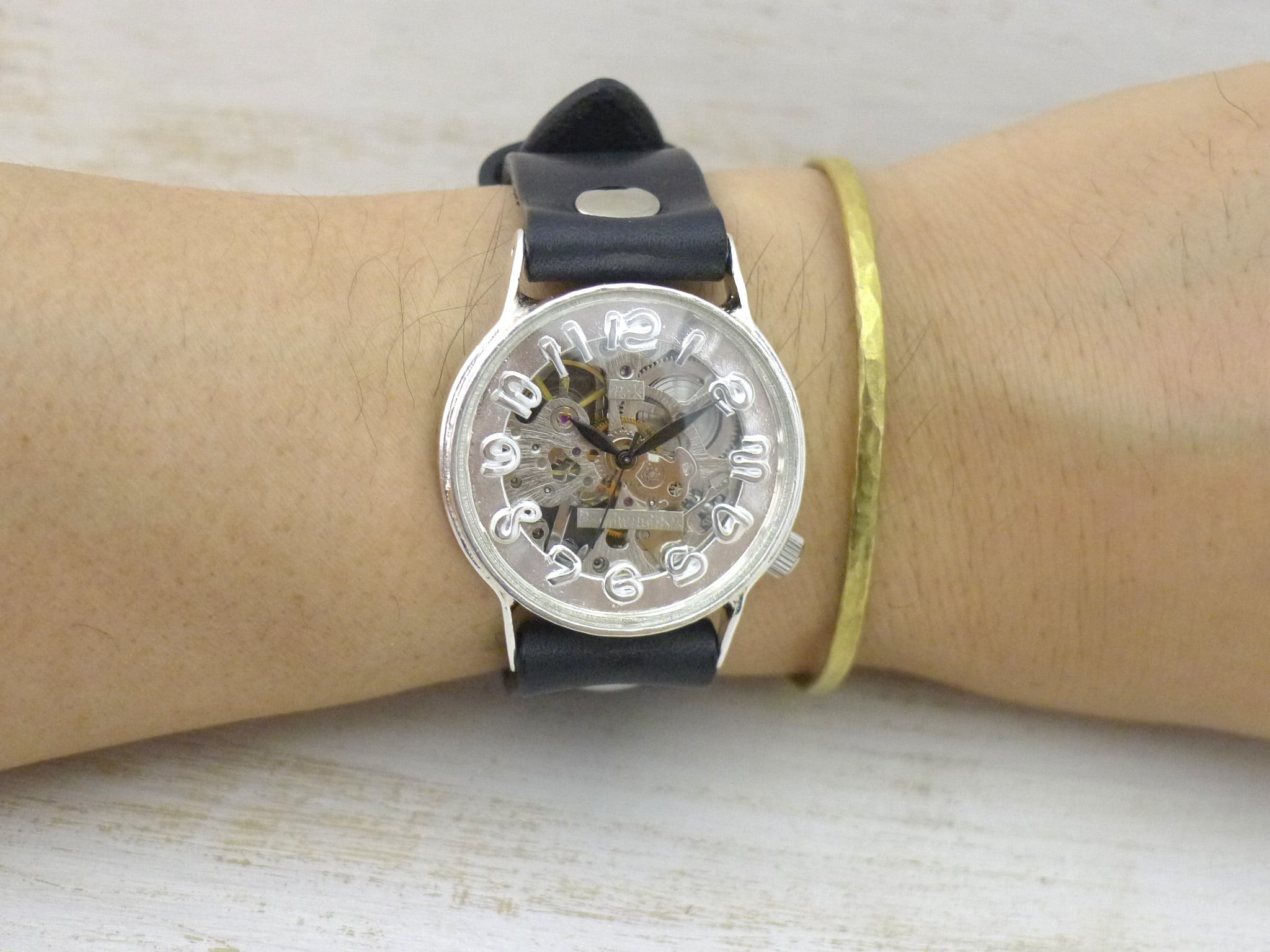 SHW078 手巻きSilver925 約36mm 手作り腕時計 [SHW078 SV]