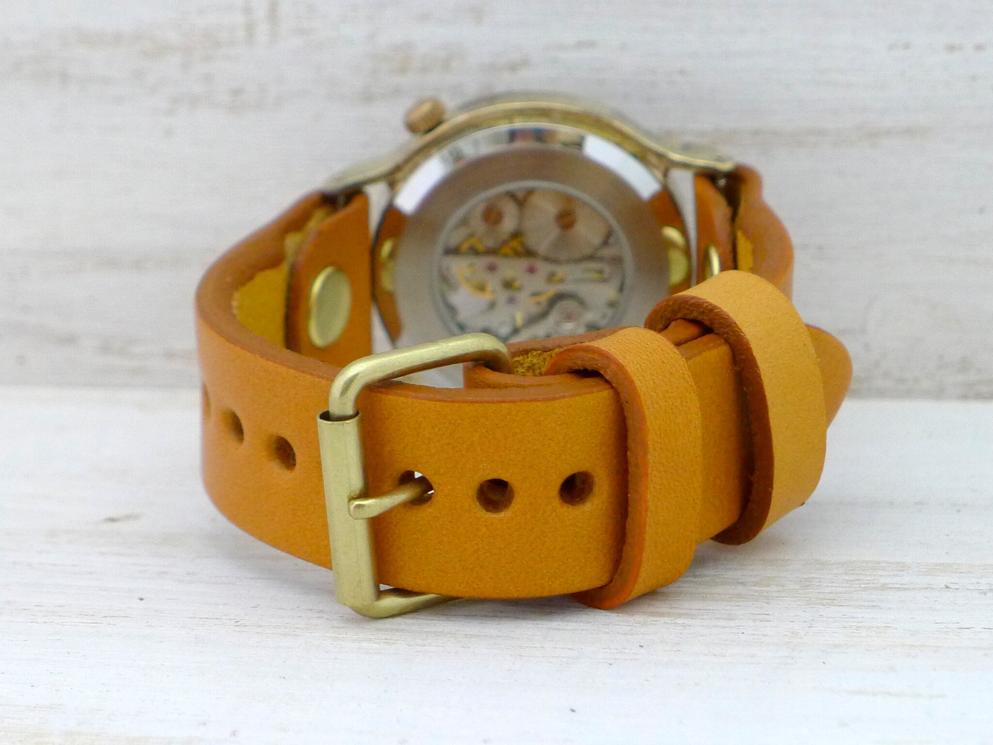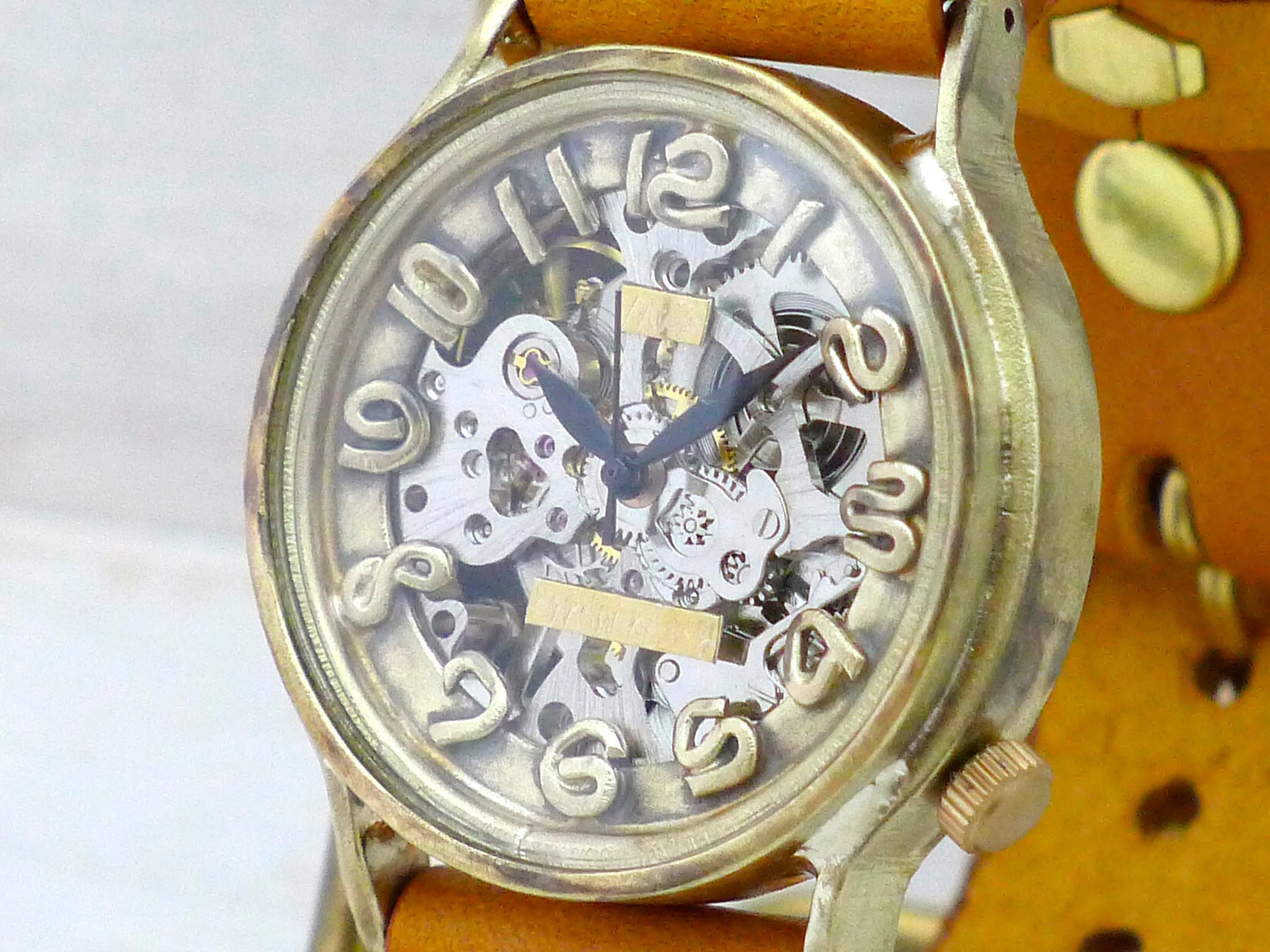 BHW078 手巻きBrass(真鍮)36mm 立体数字インデックス 手作り腕時計 [BHW078 SV]