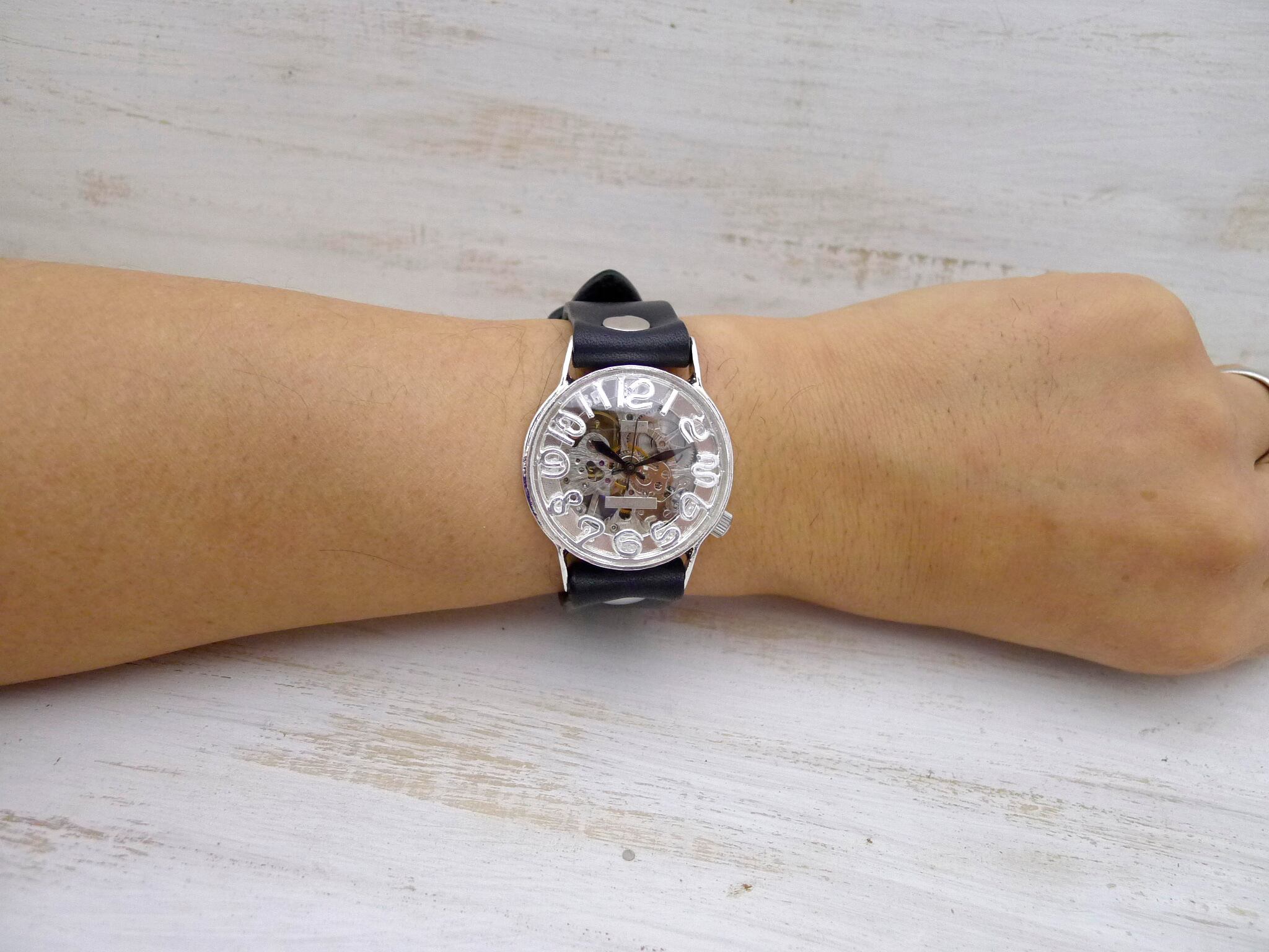 SHW060 手巻きSilver925 36mm フローティングインデックス 手作り腕時計 [SHW060 SV/BK]