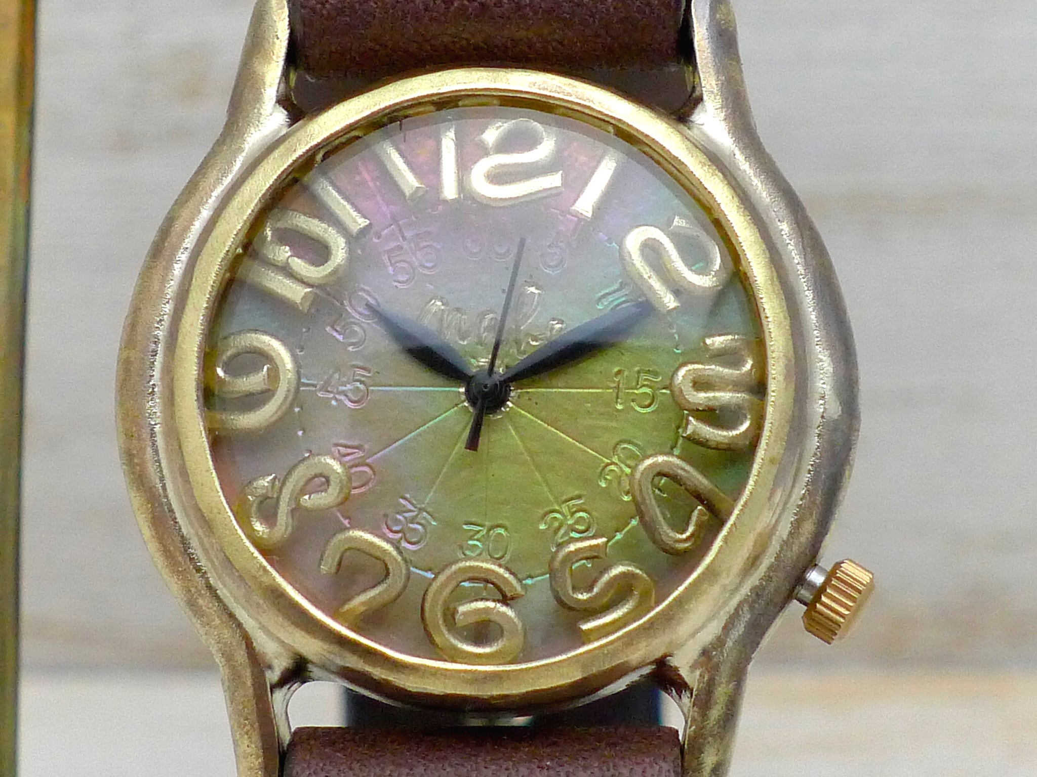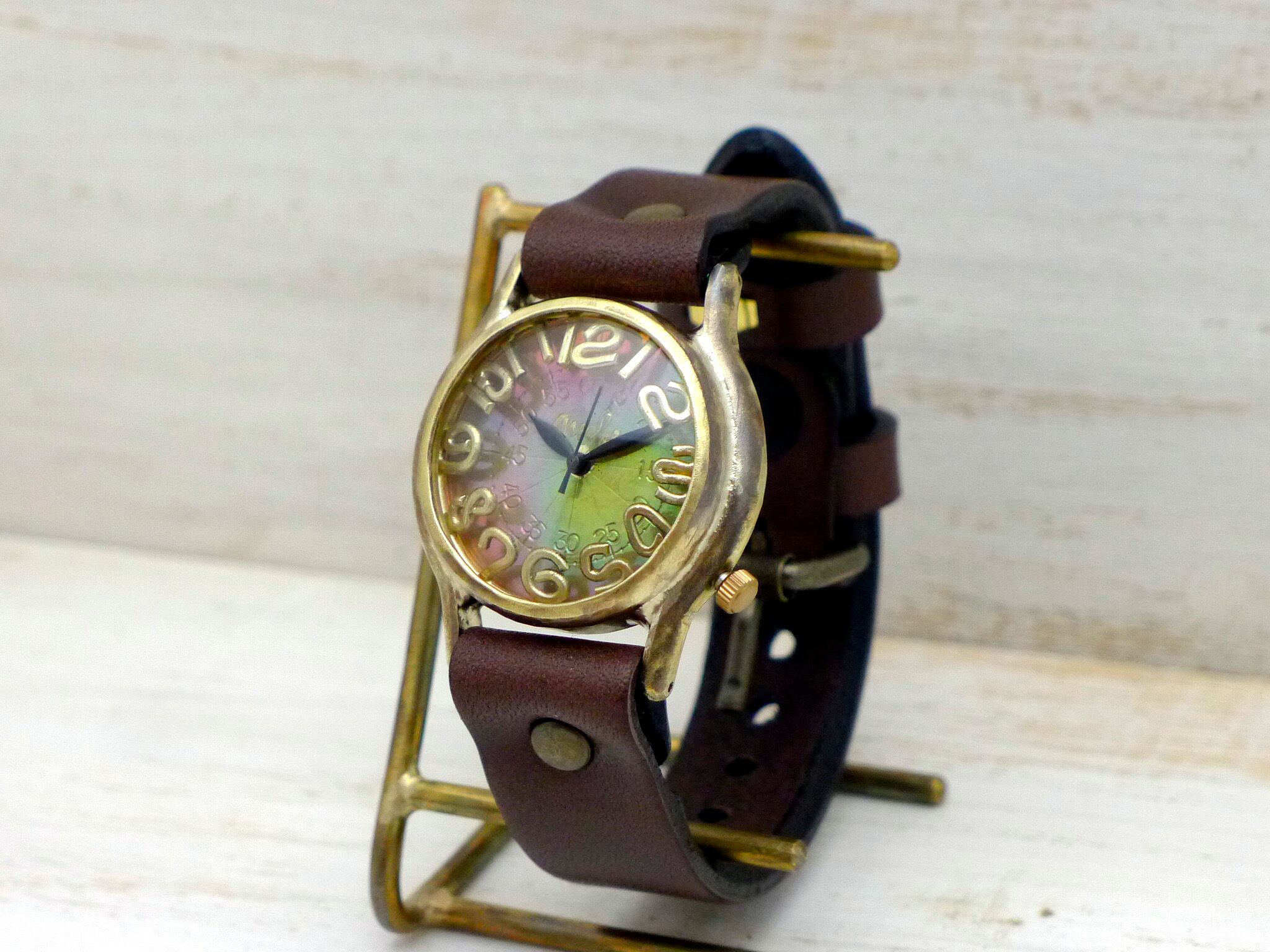 "On Time3-B" Mens32mm Brass 焼文字盤 手作り腕時計 [355]
