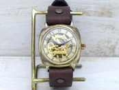 BHW127 手巻きBrass(真鍮)クッションケース 33mm アラビア数字 手作り腕時計 [BHW127]